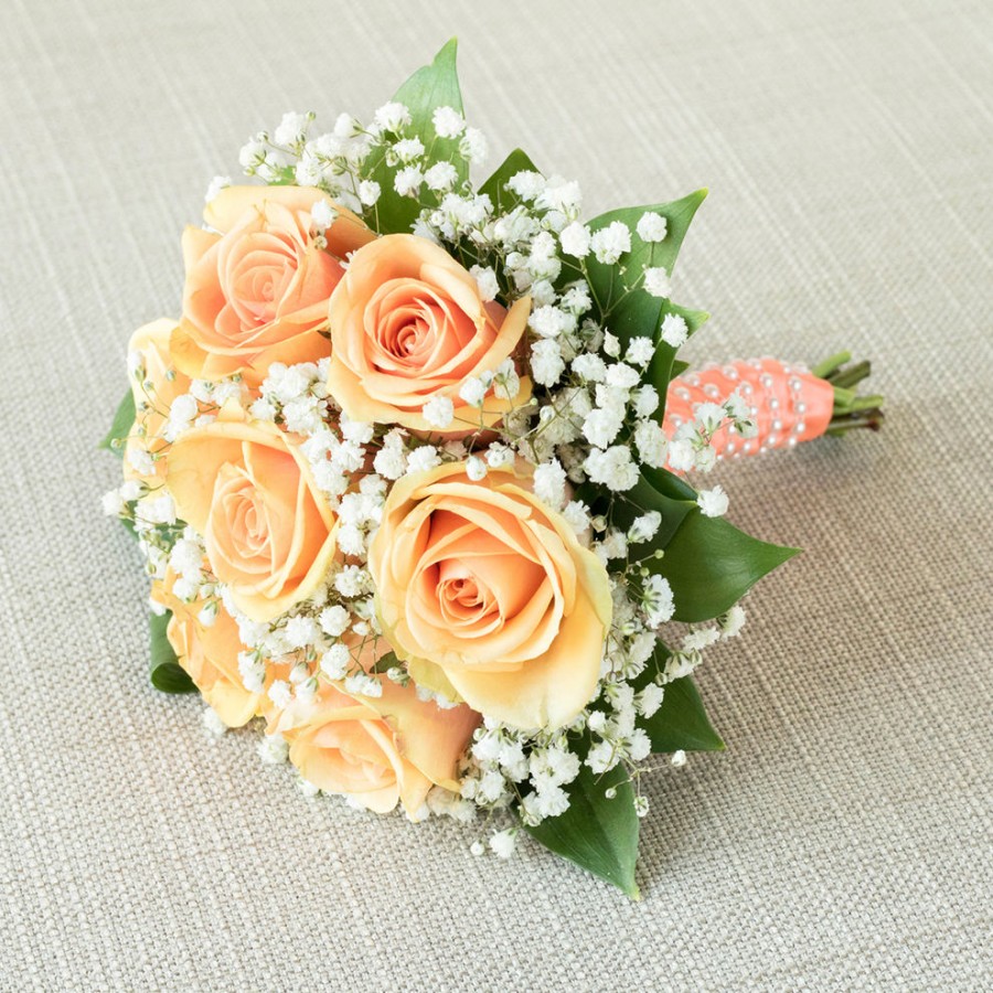 With a heart of stunningly orange roses, supported by gypsophila flowers, we've created our bridesmaid bouquet to look as magnificent as the bridal bouquet!
